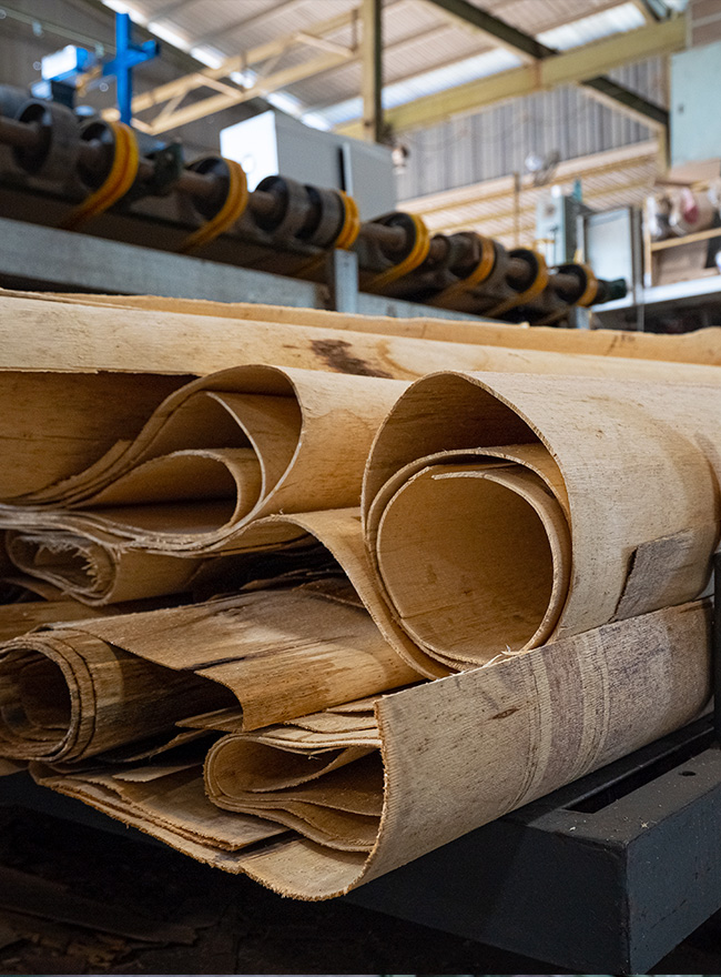 Veneer is a thin layer wood sheet which is peeled from lumber. At TCSS, our face veneers are made from selected PEFC-certified tropical wood that are sourced from sustainably managed forests. Our core veneers are made from either rubber wood or PEFC-certified tropical wood.